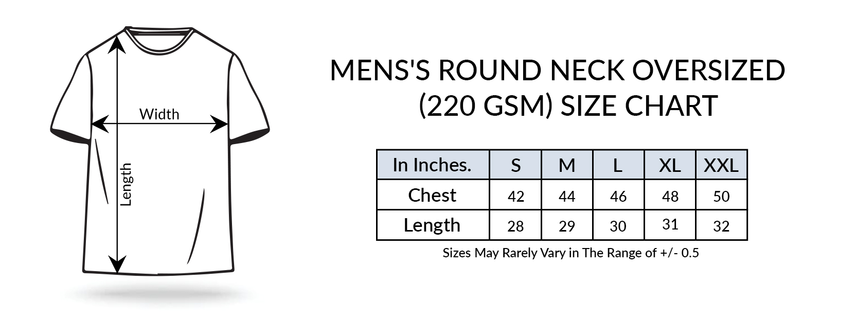 Men's Oversize T-shirt- 220 GSM Size Guide