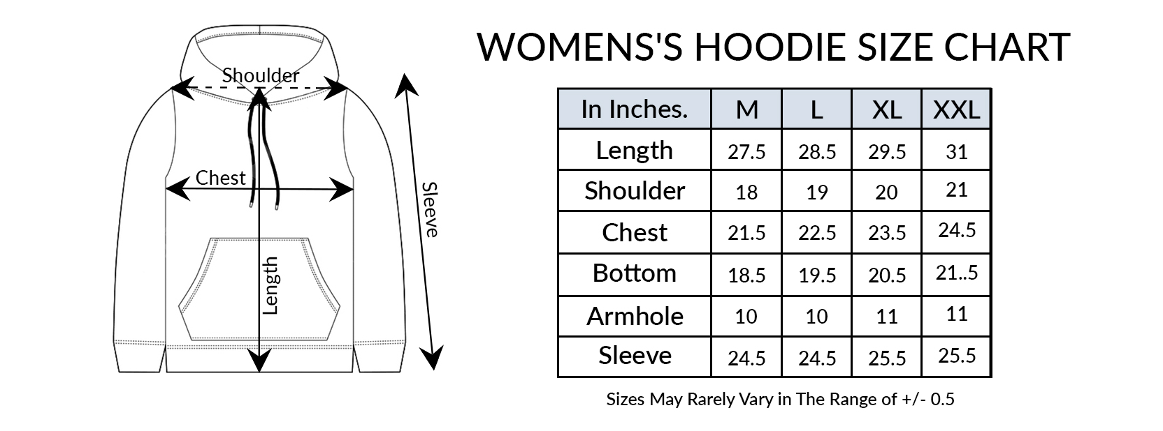 Women's Hoodies Size Guide